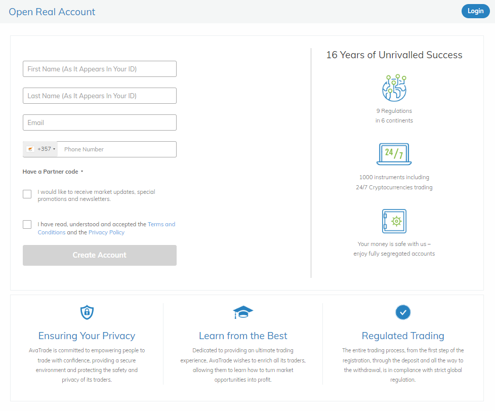 AvaTradeアカウントにアクセスするには、画面右上のAvaTradeログインセクションに移動し、認証情報を安全に入力して取引活動を管理します。これは使いやすさを重視した簡単なプロセスであり、アカウントや取引プラットフォームへの迅速なアクセスを確保します。