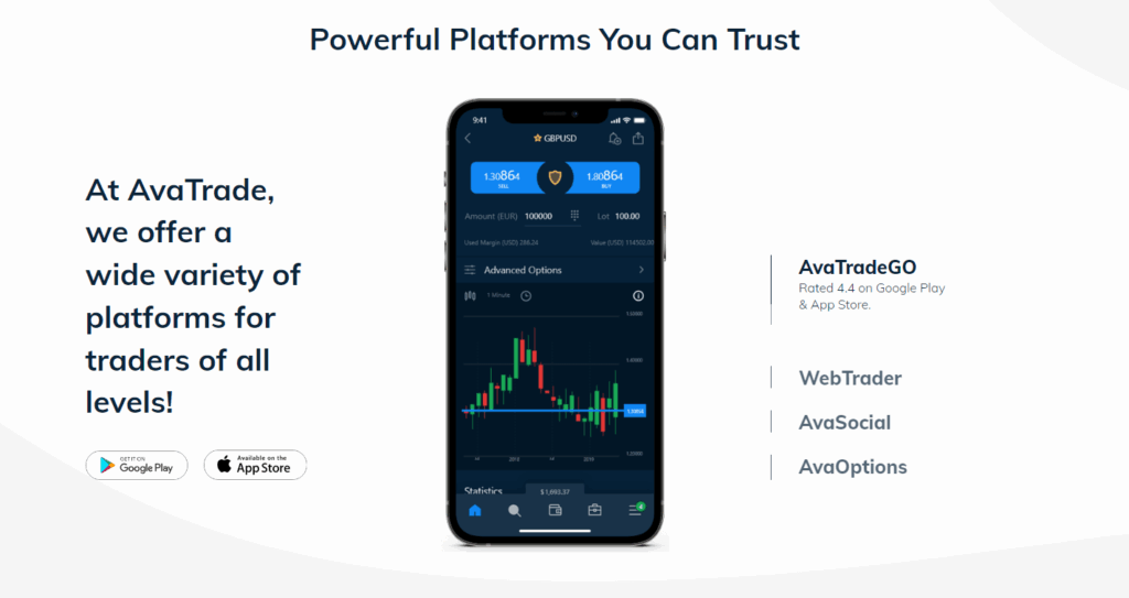 AvaTradeはMetaTrader 4、MetaTrader 5、および独自のWebTraderやAvaTradeGOなど、さまざまなプラットフォームを提供しています。
