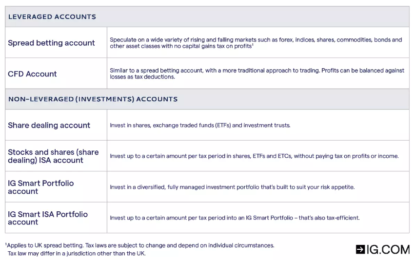 Image source: IG’s Account Types